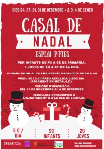 L’Esplai Pífies ja ha obert les inscripcions per als Casals de Nadal, que com en les darreres edicions seran tant per a infants com per a joves.