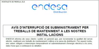 16 de juny. Avís d’interrupció de subministrament elèctric
