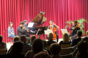 El Quartet Altimira, que ja ha estat en anteriors ocasions al nostre municipi en format exclusiu de corda, va sumar-se, en aquesta ocasió, a les mans del pianista Eduard Sáez. Com era d’esperar, va ser una actuació de gran qualitat i en la que es va dividir en dues parts. La primera amb el quartet amb piano en G minor de WA Mozart, i una segona amb Piano quintet en F minor op.34 de J. Brahms.