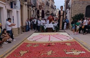 Nova celebració de la festa de Corpus, recuperada recentment, amb la confecció de tres catifes al carrer Església que va comptar amb la implicació de veïns i veïnes dels Hostalets de Pierola.