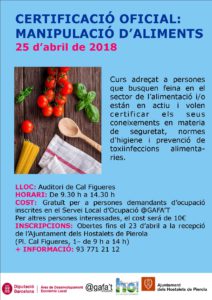 El Servei Local d’Ocupació organitza el curs per obtenir el certificat oficial de manipulació d’aliments als Hostalets de Pierola.