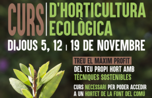 El curs, amb un cost de només 10€, consta de 3 classes teòriques (5, 12 i 19 de novembre de 19 a 21 hores) telemàticament i una quarta sessió pràctica amb data per determinar. Amb aquestes sessions s’aprendran les tècniques per treure el màxim rendiment d’un hort ecològic.