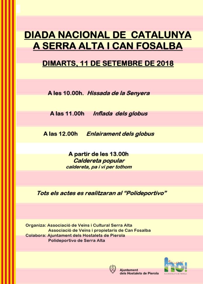 Celebració de la Diada Nacional de Catalunya als barris de Serra Alta i Can Fosalba dels Hostalets de Pierola. Tots els actes se celebraran al Polideportivo de Serra Alta.