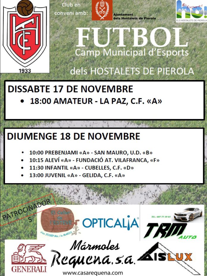 Partits de lliga del Club Futbol Hostalets de les diferents categories.
