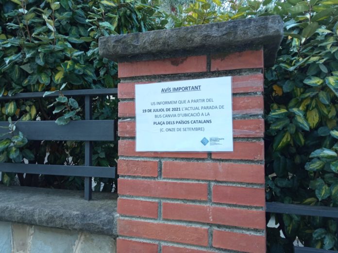 Primer dia que el bus interurbà dels Hostalets de Pierola deixa la parada de l’espai situat al carrer Catalunya/Caseta de l’hort i es trasllada a la de la plaça dels Països Catalans, a la banda del carrer Onze de Setembre.