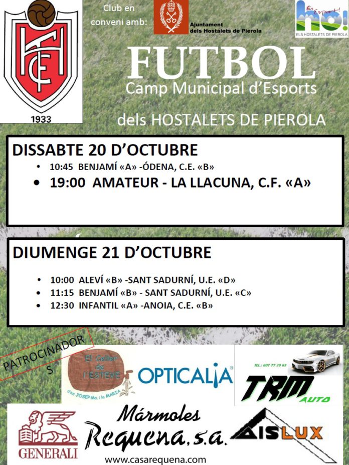 Partits de lliga de les diferents categories del Club Futbol Hostalets.