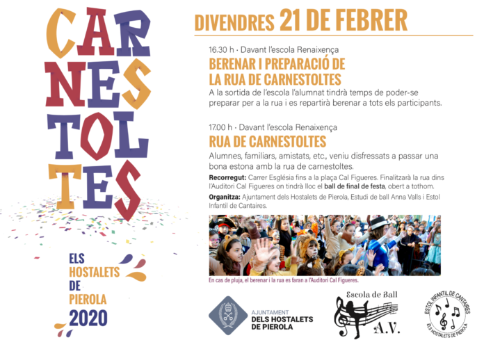 21 febrer. Rua de Carnestoltes 21 de febrer de 2020 640 Compartir a facebook Piular a twitter When 21/02/2020 16:30 - 18:00 Add To Calendar Download ICS Google Calendar iCalendar Office 365 Outlook Live Event Type Cultura Esdeveniments newsletter