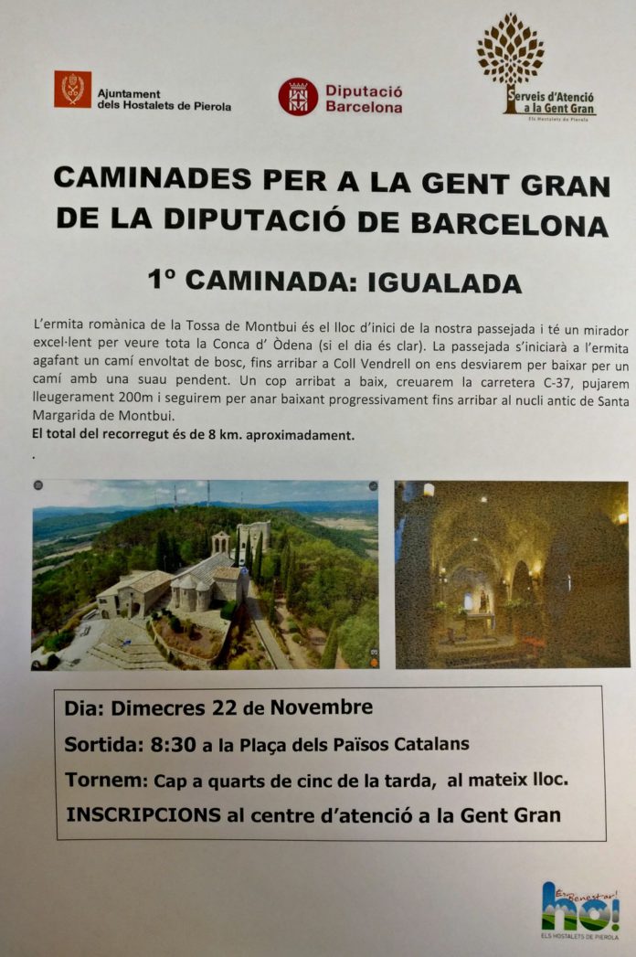 22 novembre. Caminada de la Gent Gran: La Tossa de Montbui 22 de novembre de 2017 657 Compartir a facebook Piular a twitter When 22/11/2017 08:00 - 18:00 Add To Calendar Download ICS Google Calendar iCalendar Office 365 Outlook Live Event Type Esdeveniments Gent Gran Gent Gran Més informació aquí