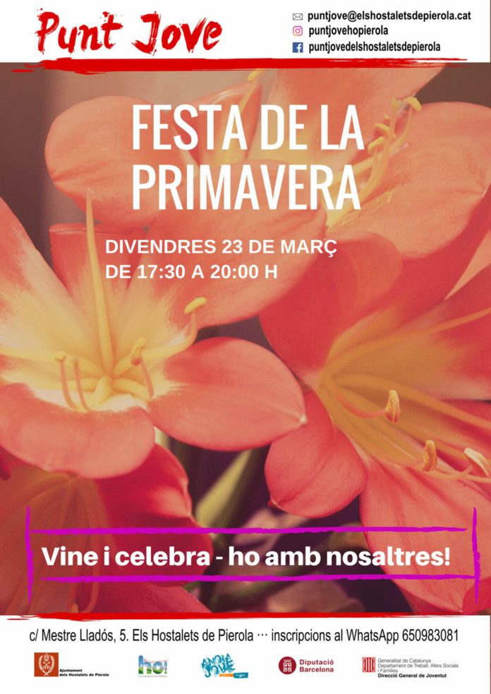 23 març. Festa de la Primavera al Punt Jove 23 de març de 2018 609 Compartir a facebook Piular a twitter When 23/03/2018 17:30 - 20:00 Add To Calendar Download ICS Google Calendar iCalendar Office 365 Outlook Live Where Punt Jove dels Hostalets de Pierola Anselm Clavé, 6, Els Hostalets de Pierola Event Type Esdeveniments Joventut newsletter Punt Jove Loading Map.... Punt Jove dels Hostalets de PierolaAnselm Clavé, 6 - Els Hostalets de PierolaEvents 41.53285 1.7733405000000175 Tota la informació aquí.