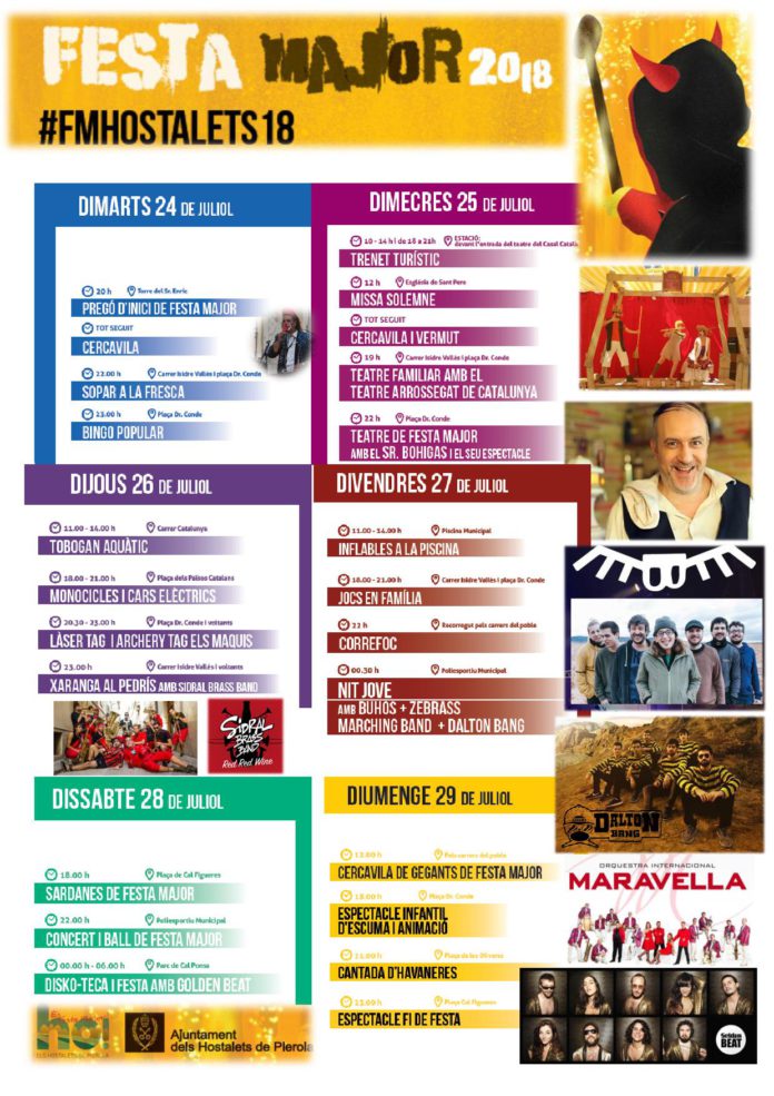 24-29 juliol. Festa Major dels Hostalets de Pierola 24 de juliol de 2018 2803 Compartir a facebook Piular a twitter When 24/07/2018 - 29/07/2018 Tot el dia Add To Calendar Download ICS Google Calendar iCalendar Office 365 Outlook Live Event Type Cultura Esdeveniments Esport Gent Gran Joventut newsletter Turisme estiu 18, Festa Major Tota la informació, programa i esdeveniments aquí.