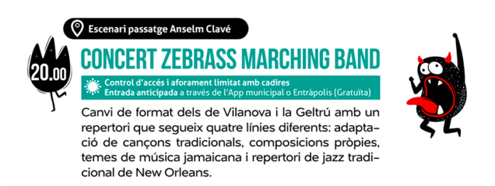 24 juliol. Concert Zebrass (FM2021) 24 de juliol de 2021 300 Compartir a facebook Piular a twitter When 24/07/2021 20:00 - 21:45 Add To Calendar Download ICS Google Calendar iCalendar Office 365 Outlook Live Where Escenari c. Anselm Clavé C. Anselm Clavé, Els Hostalets de Pierola Event Type Esdeveniments Festes Map Unavailable
