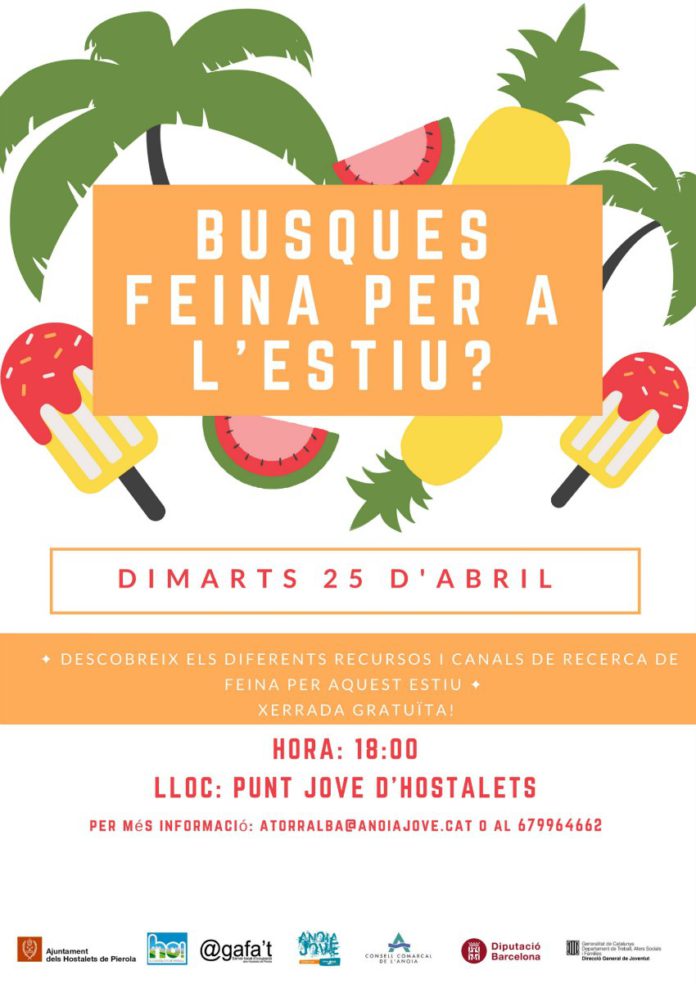 25 abril. Xerrada: “Busques feina per a l’estiu?” 25 d'abril de 2017 583 Compartir a facebook Piular a twitter When 25/04/2017 18:00 - 19:00 Add To Calendar Download ICS Google Calendar iCalendar Office 365 Outlook Live Where Event Type Esdeveniments Joventut newsletter estiu, feina, joventut Map Unavailable Tota la informació aquí.