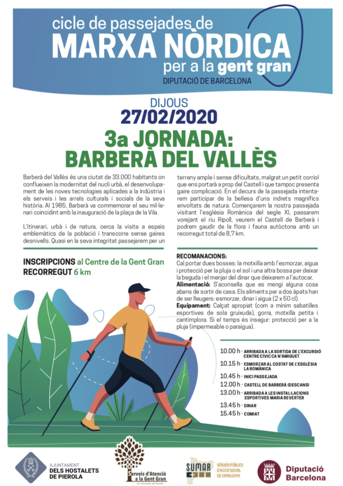 27 febrer. Caminada Barberà del Vallès 27 de febrer de 2020 709 Compartir a facebook Piular a twitter When 27/02/2020 08:45 - 16:30 Add To Calendar Download ICS Google Calendar iCalendar Office 365 Outlook Live Event Type Esdeveniments Gent Gran newsletter