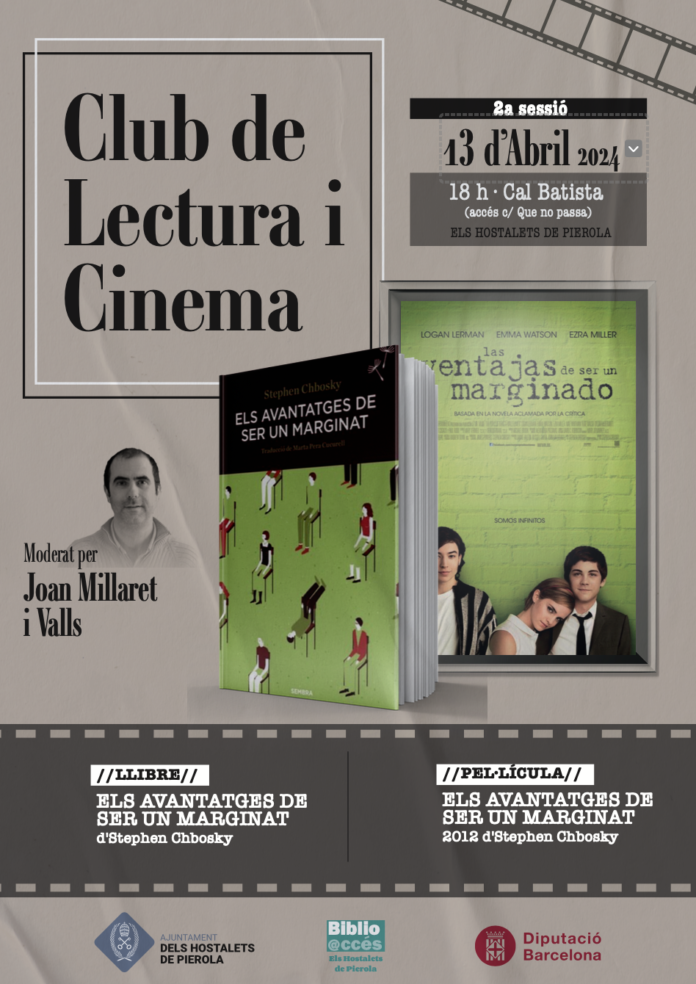 2a sessió del Cicle de Lectura i Cinema, moderat per Joan Millaret i Valls, amb el llibre i el passi de la pel·lícula “Els avantatges de ser un marginat”