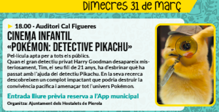 31 març. «Pokémon: Detective Pikatcu» 31 de març de 2021 658 Compartir a facebook Piular a twitter When 31/03/2021 18:00 - 20:00 Add To Calendar Download ICS Google Calendar iCalendar Office 365 Outlook Live Where Auditori de Cal Figueres Plaça Cal Figueres 1, Hostalets de Pierola Event Type Cultura Esdeveniments newsletter Loading Map.... Auditori de Cal FigueresPlaça Cal Figueres 1 - Hostalets de PierolaEvents 41.5348287 1.7685406000000512 Reserves a l’App o a Entràpolis.
