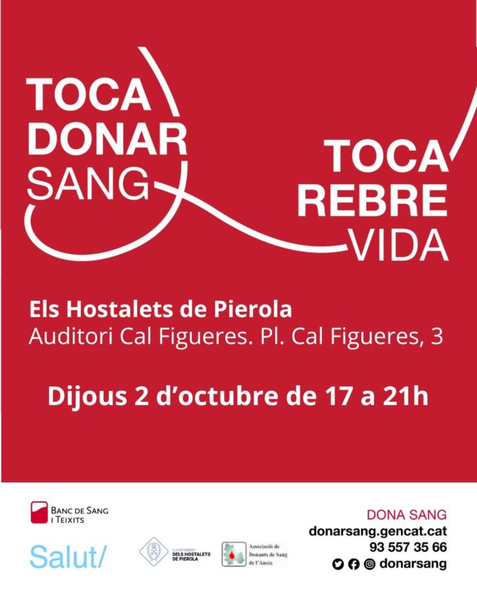 Acapte de sang 2 d'octubre de 2025 21 Compartir a facebook Piular a twitter When 02/10/2025 17:00 - 19:00 Add To Calendar Download ICS Google Calendar iCalendar Office 365 Outlook Live Where Auditori Cal Figueres Plaça Cal Figueres 1, Hostalets de Pierola Event Type Esdeveniments Salut Map Unavailable Reserva la teva hora a: bancdesang.net