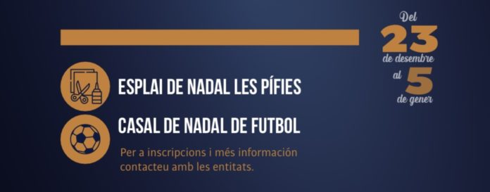 Casal Nadal futbol 23 de desembre de 2021 459 Compartir a facebook Piular a twitter When 23/12/2021 - 05/01/2022 00:00 - 23:00 Add To Calendar Download ICS Google Calendar iCalendar Office 365 Outlook Live Event Type Esdeveniments Festes Tradicions