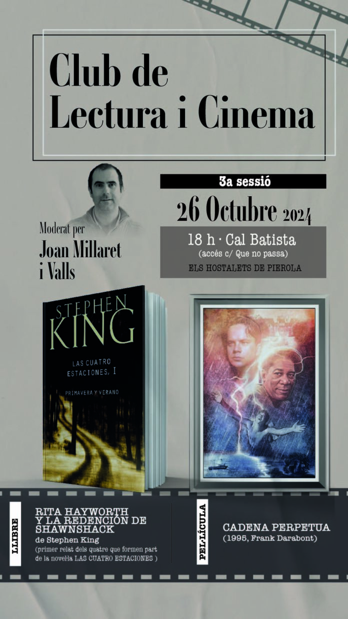 Club de Lectura i Cinema 26 d'octubre de 2024 88 Compartir a facebook Piular a twitter When 26/10/2024 18:00 Add To Calendar Download ICS Google Calendar iCalendar Office 365 Outlook Live Event Type Cultura Esdeveniments Dissabte 26 d’octubre 18.00h Cal Batista Moderat per joan Millaret i Valls