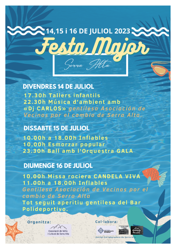 FM Serra Alta 14 de juliol de 2023 215 Compartir a facebook Piular a twitter When 14/07/2023 17:30 - 23:30 Add To Calendar Download ICS Google Calendar iCalendar Office 365 Outlook Live Event Type Esdeveniments Estiu Festes newsletter