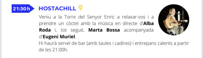 HostaChill SJ22 13 d'agost de 2022 252 Compartir a facebook Piular a twitter When 13/08/2022 21:30 Add To Calendar Download ICS Google Calendar iCalendar Office 365 Outlook Live Event Type Cultura Esdeveniments Estiu Festes Joventut newsletter