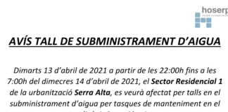 13 abril. Tall d’aigua a Serra Alta