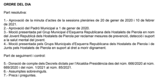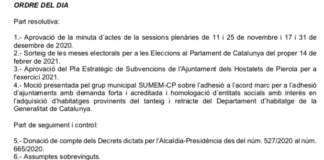10 febrer. Convocatòria de Ple