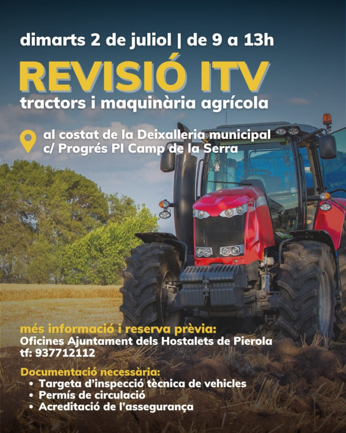 Més informació i reserva prèvia: Oficines de l’Ajuntament dels Hostalets de Pierola tf: 937712112