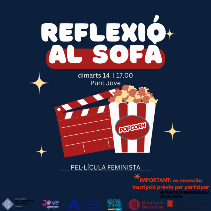 Sessió de “Reflexió al sofà” al Punt Jove i passi d’una pel·licula en clau feminista. Cal inscripció prèvia pe participar-hi, al compte d’instagram @puntjovehopierola o al telèfon 650 98 30 81