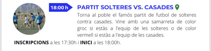 Solteres vs casades SJ22 13 d'agost de 2022 269 Compartir a facebook Piular a twitter When 13/08/2022 18:00 Add To Calendar Download ICS Google Calendar iCalendar Office 365 Outlook Live Event Type Cultura Esdeveniments Esport Estiu Festes Joventut newsletter