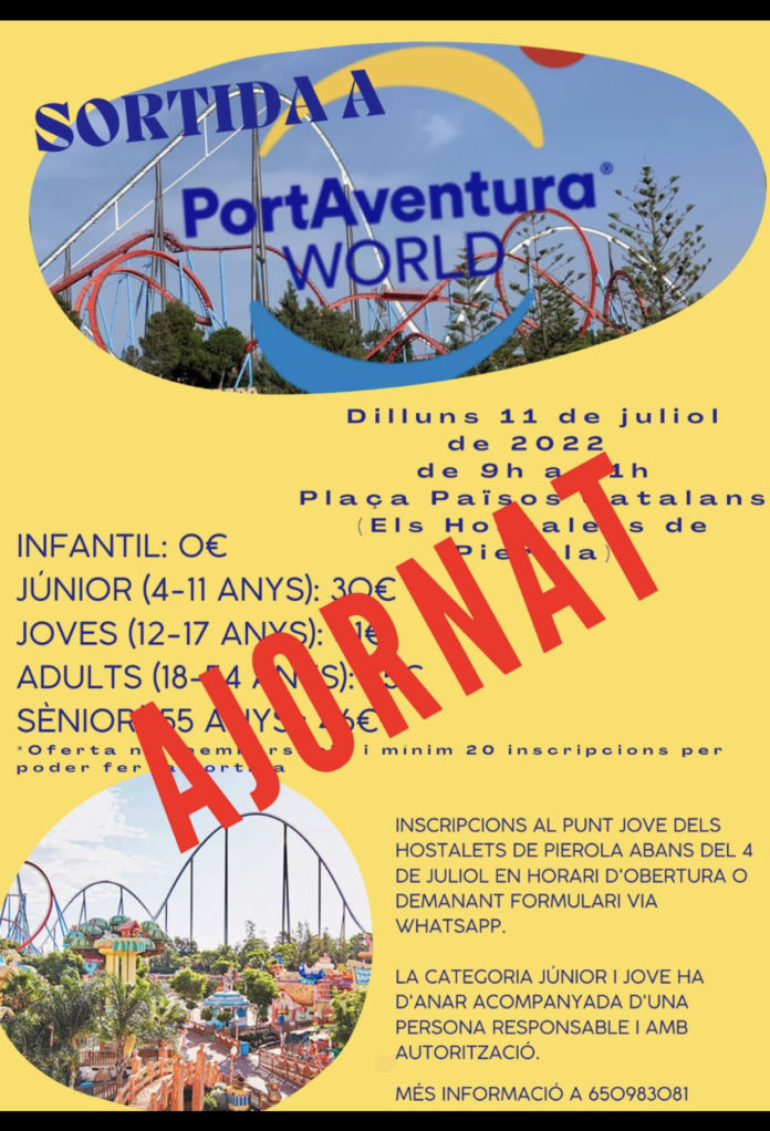 Sortida a PortAventura (ajornada) 11 de juliol de 2022 645 Compartir a facebook Piular a twitter When 11/07/2022 09:00 - 21:00 Add To Calendar Download ICS Google Calendar iCalendar Office 365 Outlook Live Event Type Esdeveniments Estiu Joventut newsletter