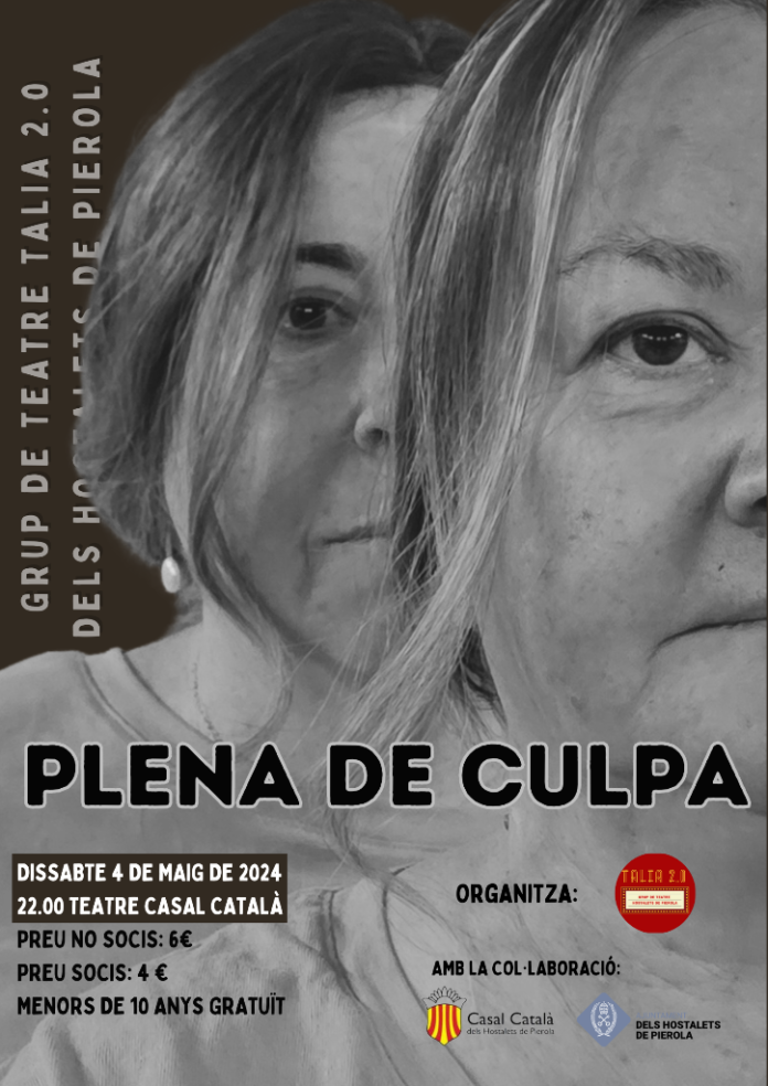 Teatre: Plena de culpa 4 de maig de 2024 305 Compartir a facebook Piular a twitter When 04/05/2024 22:00 - 23:30 Add To Calendar Download ICS Google Calendar iCalendar Office 365 Outlook Live Where Teatre del Casal Català Av. Catalunya, Els Hostalets de Pierola Event Type Cultura Esdeveniments Map Unavailable Dissabte 4 de maig | Teatre Casal Català Preu: Socis 4 € No Socis 6 €