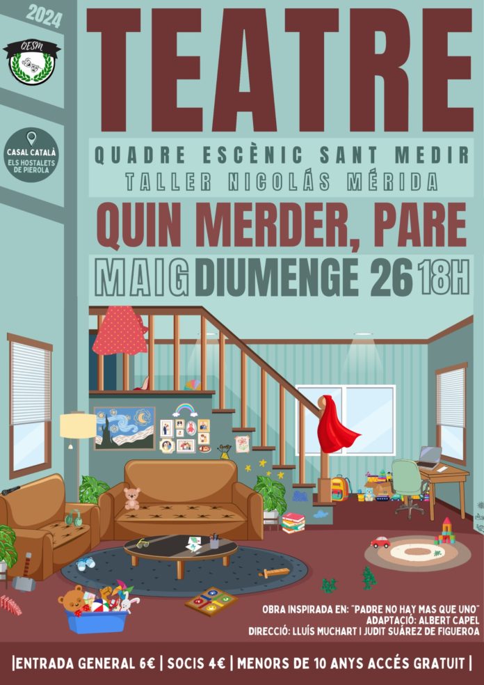 Teatre “Quin merder, pare” 26 de maig de 2024 212 Compartir a facebook Piular a twitter When 26/05/2024 18:00 - 19:30 Add To Calendar Download ICS Google Calendar iCalendar Office 365 Outlook Live Where Sala Teatre Casal Català Isidre Vallès , 30, Els Hostalets de Pierola Event Type Cultura Esdeveniments Butlletí Loading Map.... Sala Teatre Casal CatalàIsidre Vallès , 30 - Els Hostalets de PierolaEvents 41.5334999 1.7705200000000332 Diumenge 26 de maig | 18.00h Casal Català Entrada general: 6€, Socis: 4€ Menors de 10 anys: accés gratuït A càrrec del Quadre Escènic Sant Medir. Taller Nicolás Mérida