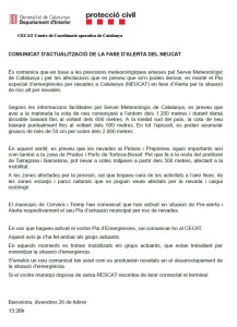 COMUNICAT D’ACTUALITZACIÓ DE LA FASE D’ALERTA DEL NEUCAT