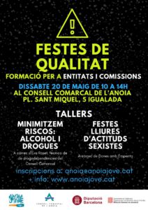 El Servei Comarcal de Joventut de l’Anoia, i dins del marc del programa GPS Jove (Grup Promoció Salut), aposta per formar les entitats i joves com agents actius i transformadors de dinàmiques relacionades amb l’oci nocturn.