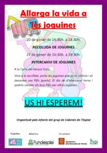 El grup de Cabirols de l’Esplai Pífies estan duent a terme un projecte d’intercanvi de joguines que l’han anomenat: “Allarga la vida a les joguines”.