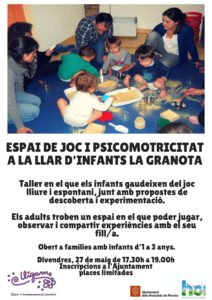El proper divendres, 27 de maig s’obrirà un “Espai de joc i psicomotricitat” a la Llar d’Infants “La Granota”, ofert per la regidoria d’educació i l’espai d’acompanyament familiar Lligams.