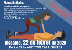 Places completes (amb algunes de reserva) per al curs d’autoprotecció i suport vital bàsic que inclou també l’ús del Desfibril·lador Extern Automàtic (DEA). Una formació prevista per al 22 de febrer de 9.00 a 13.00 hores a l’Auditori Cal Figueres. El taller és gratuït però està limitat a un màxim de 15 persones.