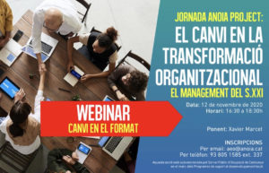 Aquest dijous 12 de novembre, de 16.30 a 18.30, Xavi Marcet farà una xerrada telemàtica sobre la Transformació Organitzacional de les empreses a través de la plataforma Zoom.