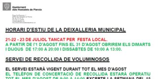 Horari de la deixalleria municipal a l’agost de 2016
