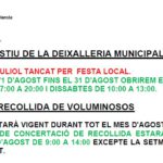 Horari de la deixalleria municipal a l’agost de 2016